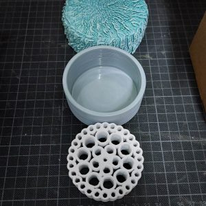 The ancient pyxids were often turned from boxwood, but there were also examples made of other materials: ivory, metal, alabaster, ceramics. It can be said that pyxides have arrived in the 21st century with this example printed in porcelain!